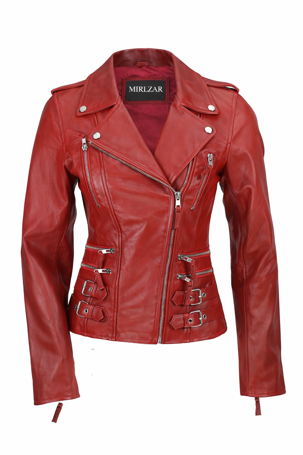 Women’s Buckle Detail Leather Biker Jacket